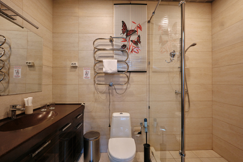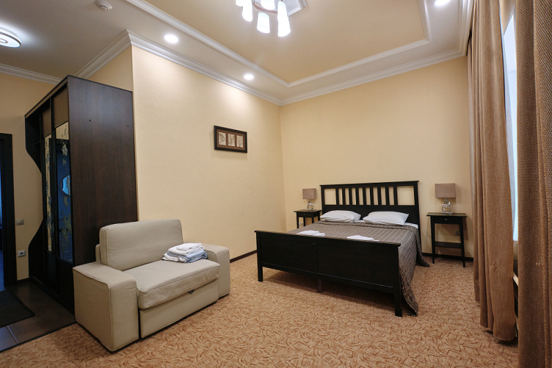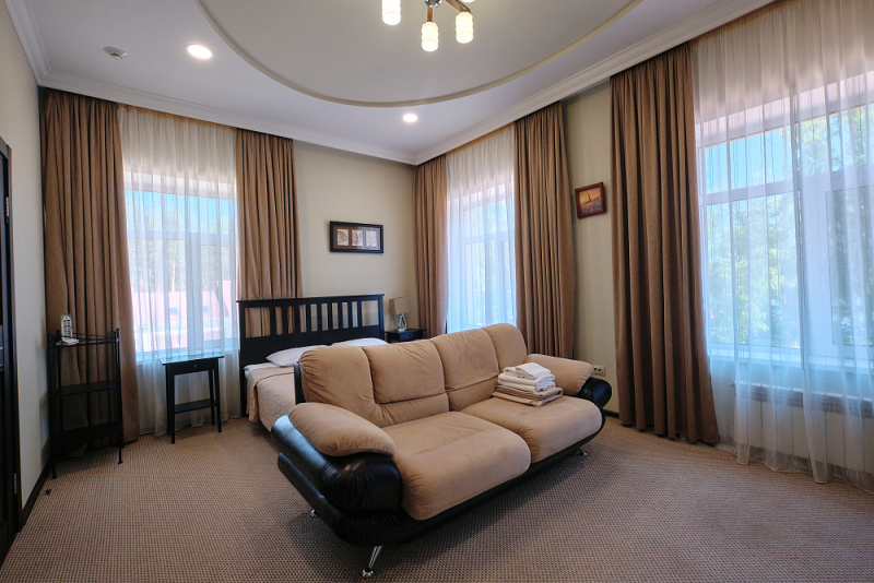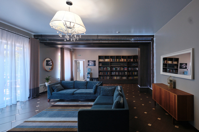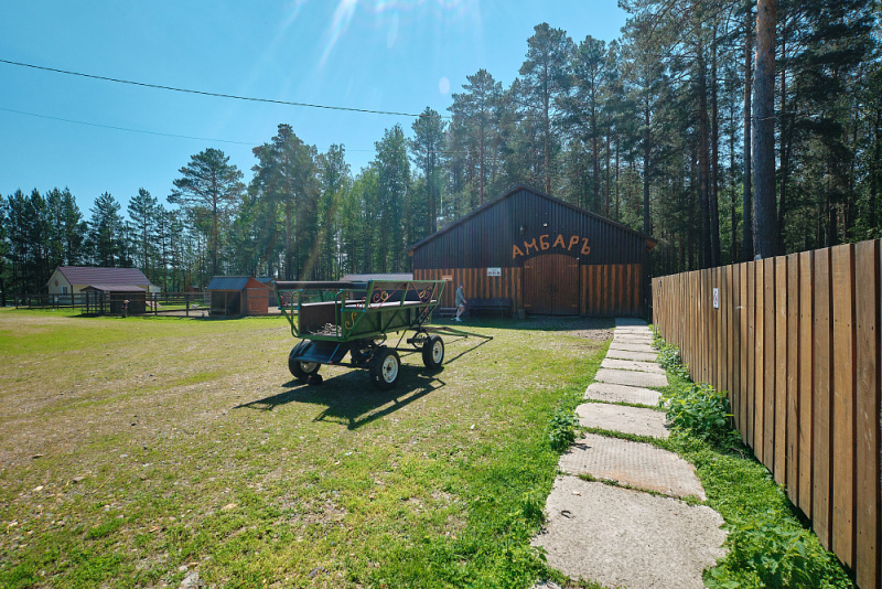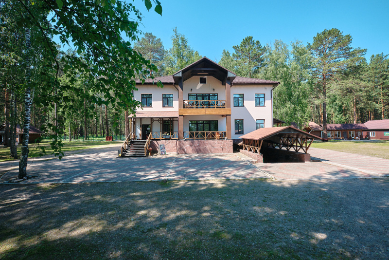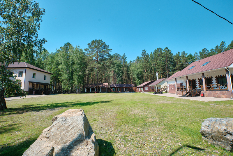 На территории построено двенадцать домов площадью от 35 кв. м. до 70 кв. м, вместимостью от 4 до 8 человек.