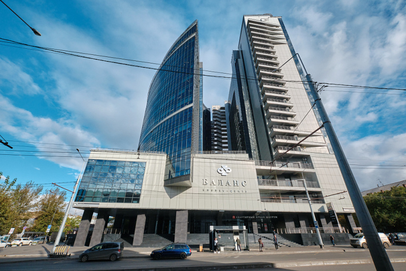- БЦ «Баланс» — это 2 высотные башни в 18 и 23 этажа в современном архитектурном стиле с общей площадью около 70 000 м².
