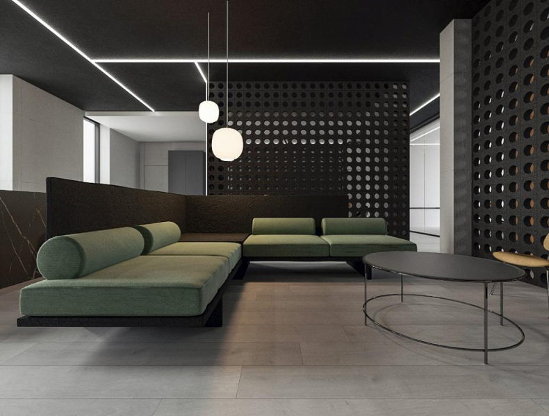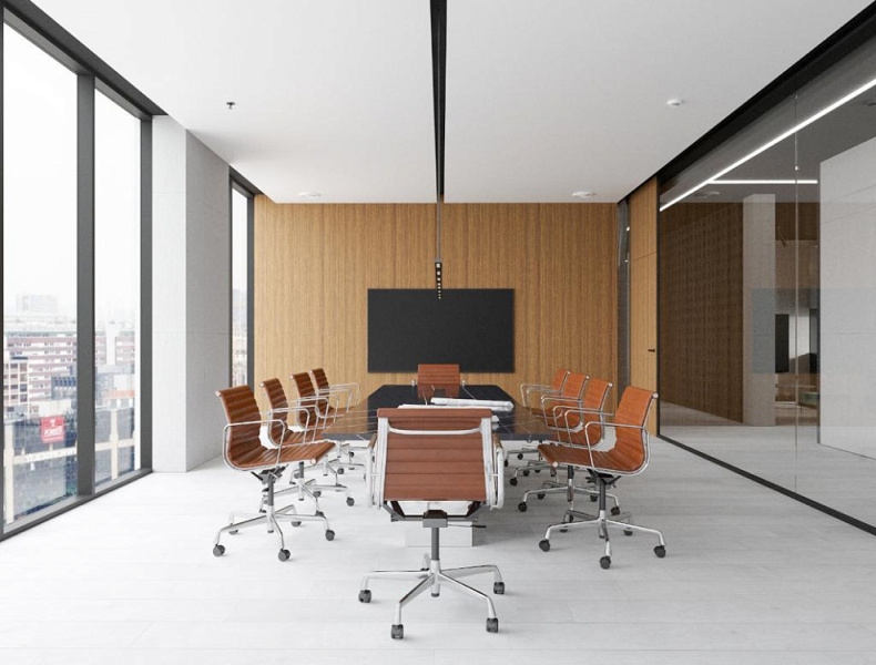 Материалы отделки - комбинация структурного остекления и навесного вентилируемого фасада с отделкой из керамического гранита.