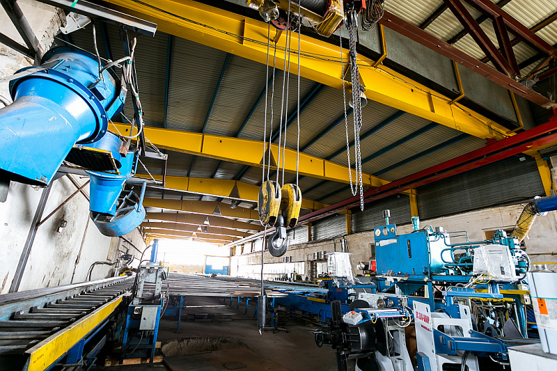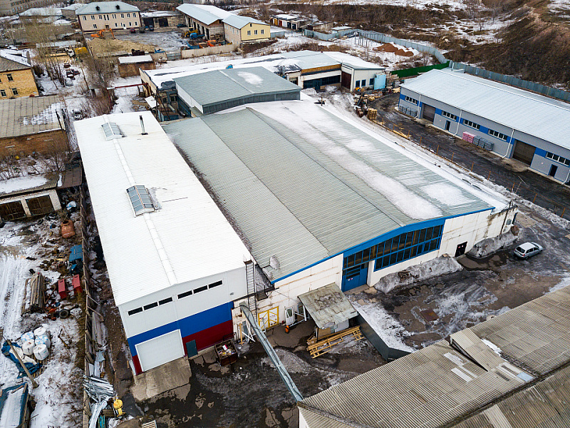 1. Производственный корпус площадью 1266.8 м². Железобетонное каркасное панельное здание (2008 г. постройки) с металлическими фермами и кровлей из оцинкованного проф. листа. Высота потолков варьируется от 4.8 до 8 метров. Бетонные полы. Три вытяжки. Откатные ворота 4 (ширина) х 3,9 (высота) м. Четыре кран-балки грузоподъёмностью от 2-х до 3,2 тонн.