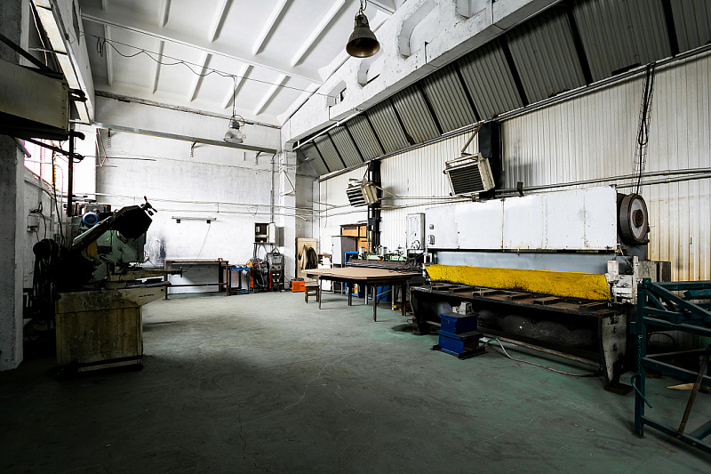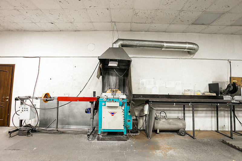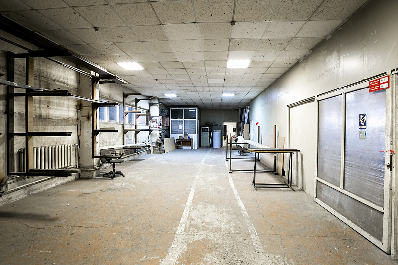 2. Производственный цех площадью 547,8 м². Высота потолков от 2,8 до 5,3 м. Две вытяжки.