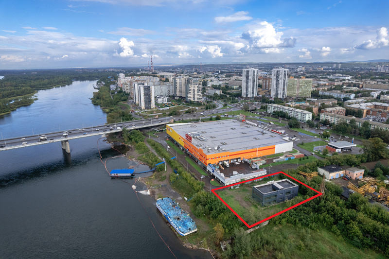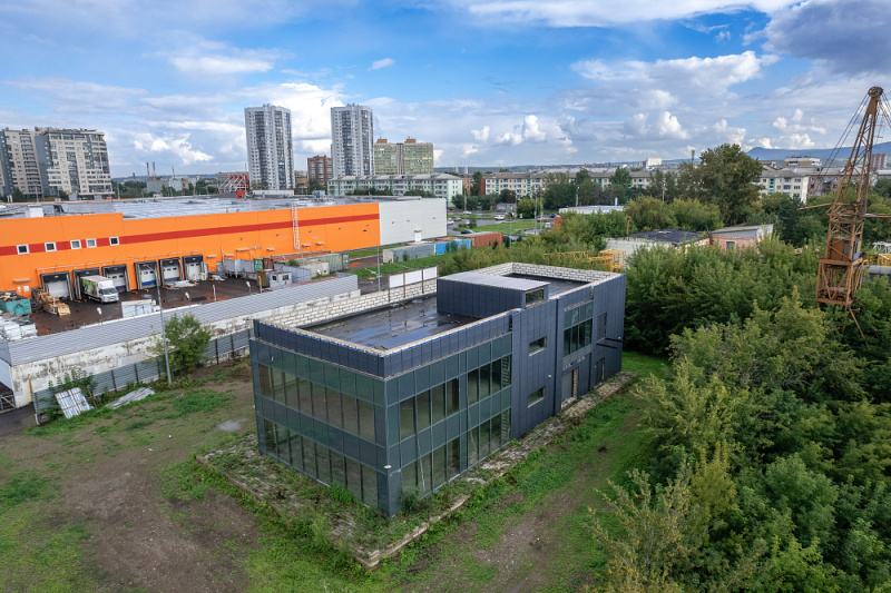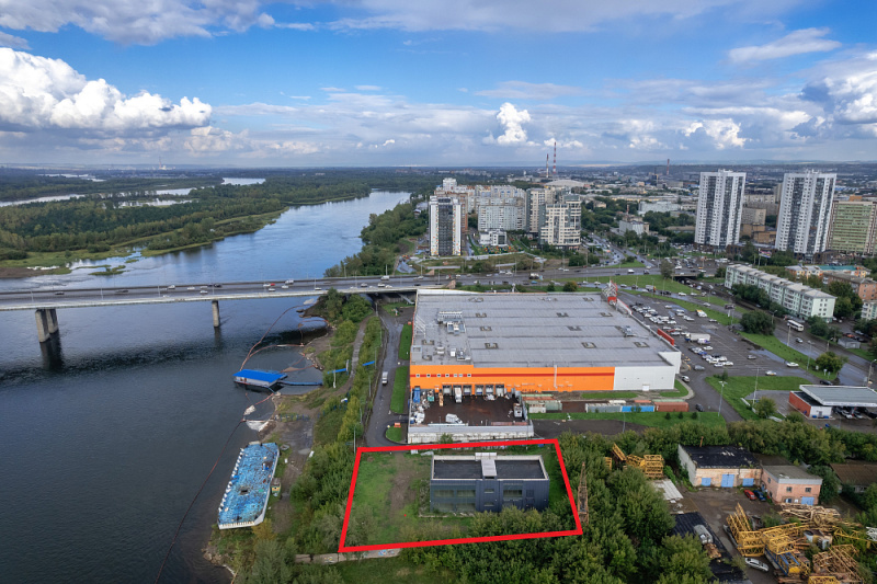 Здание расположено на съезде с Октябрьского моста. До Взлетки 10 минут. Универсальное здание подойдет под многие коммерческие цели.